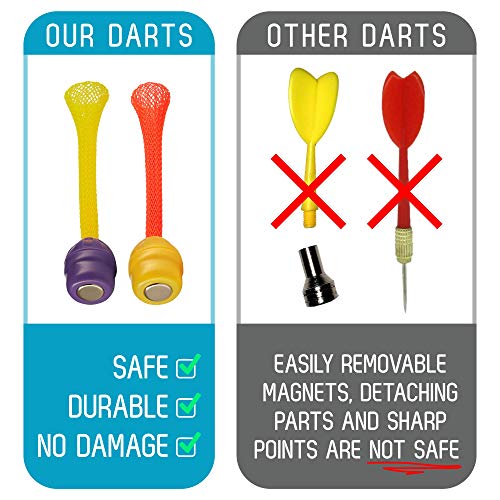 כל הכיף של חצים קלאסיים ללא נזק לקירות, חיות מחמד או אנשים! החצים עפים ישר והם כוללים מגנטים חזקים שמבטיחים שהם נדבקים ללוח, בכל פעם! חצים בטיחותיים מושלמים לילדים. בנים ובנות ילמדו קואורדינציה ויהנו בזמן שההורים לא דואגים לבטיחות שלה או לרהיטים.